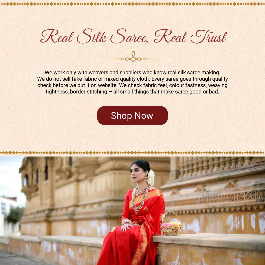Every silk saree here is picked carefully. We check cloth, colour, and feel before listing. Only good and wearable silk saree comes to website